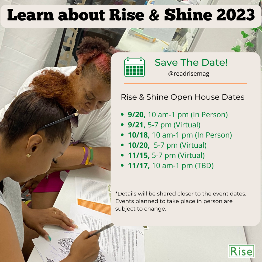 Rise invites NYC parents impacted by ACS to join us for an open house information session this fall to learn about the Rise & Shine Program and how to apply to the 2023 cohort.