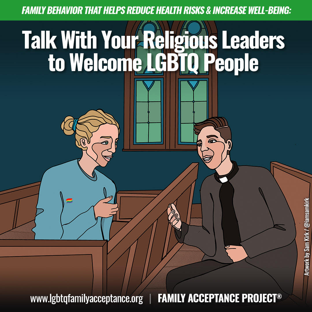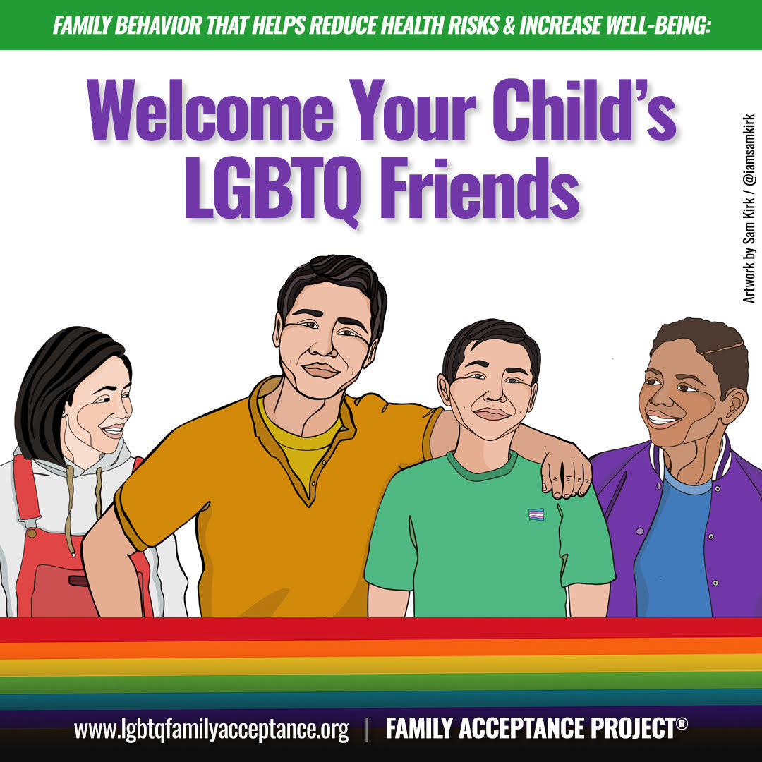 >> The Family Acceptance Project developed posters to help decrease family rejection and health risks and increase family support and well-being for LGBTQ youth. Their Poster Guidance provides background information on the research behind the posters and gives suggestions for how to use them. The posters and guidance are available in 11 language and cultural versions to download directly from their website.