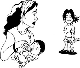 Just as I feared, after Francisco was born, my daughter began to get angry at me because I didn’t attend to her like before. If I was on the bed holding Francisco, Diego would climb on top of me. That would make Brenda angry, and she would go to her bed.