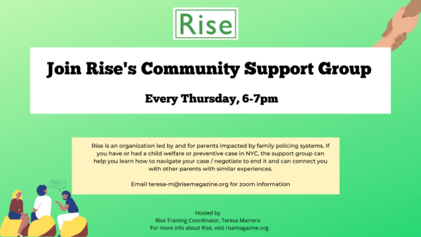 Join the weekly Rise Community Support Group for NYC parents impacted by ACS.
